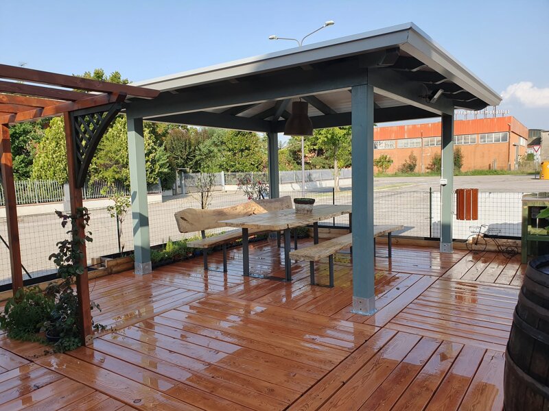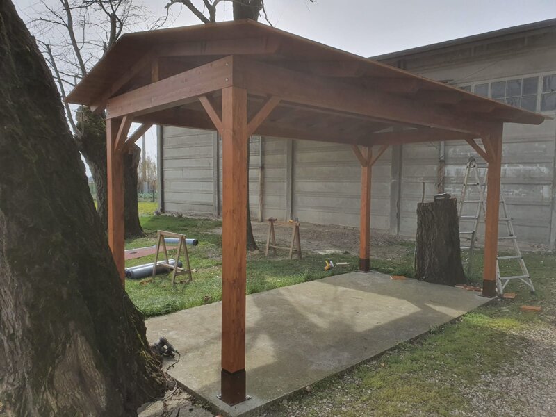 Realizzazione di casette in legno su misura, coperture in legno quali pergolati, gazebo, car-port, garage, pensiline, tettoie ecc. Ambientazioni per giardino, soppalchi, manufatti per interno ed esterno, tavoli e panche su misura. Inoltre si ripristinano scuri ed infissi.